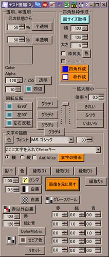 上下の順番を入れ替えたときの高速化 カーソルキーで移動後の透過処理の改善 画像を元に戻すのボタンを押したときも透過処理をするようにした 透明グラデーションをできるようにした 種類は左、左右、斜め グラデの範囲指定にトラックバーを使ってみた 透明…