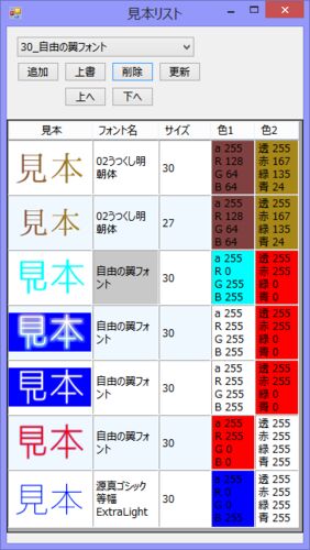 昨日の続き gogowaten.hatenablog.com 文字の描画の見本リストの 文字の設定の殆どの項目を設定ファイルに記録するようにした 図形2のマウスで描いて終了時に画像サイズを図形の大きさに合わせるようにした 赤枠以外は記録するようにした 記録している項目は…