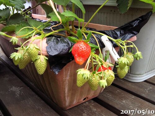 いちごの収穫記録5/10~5/17 開花したのは4/12ごろだったもの プランターCからは初収穫、形がいまいち 大きさはうちのベランダ菜園では大きい方 味は甘みが足りないけど酸味は苦手な人なら顔をしかめるくらいありそう 個人的にはすっぱいの好きだから美味し…