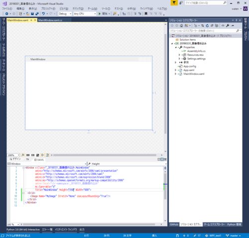 デザイン画面 画像を表示するようのImageを追加しただけ using System.Windows; using System.Windows.Media.Imaging; namespace _20190331_画像埋め込み { public partial class MainWindow : Window { public MainWindow() { InitializeComponent(); Syste…