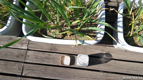 いちご 普通 にんにく(遠州極早生) 相変わらず左奥のプランターだけあんまり枯れていない 前回は一番枯れ方が大きい手前右のプランターだけ、リンカリ肥料を入れたんだけど 右下が前回リンカリ肥料を追肥したプランター、左下は追肥していないプランター 追…